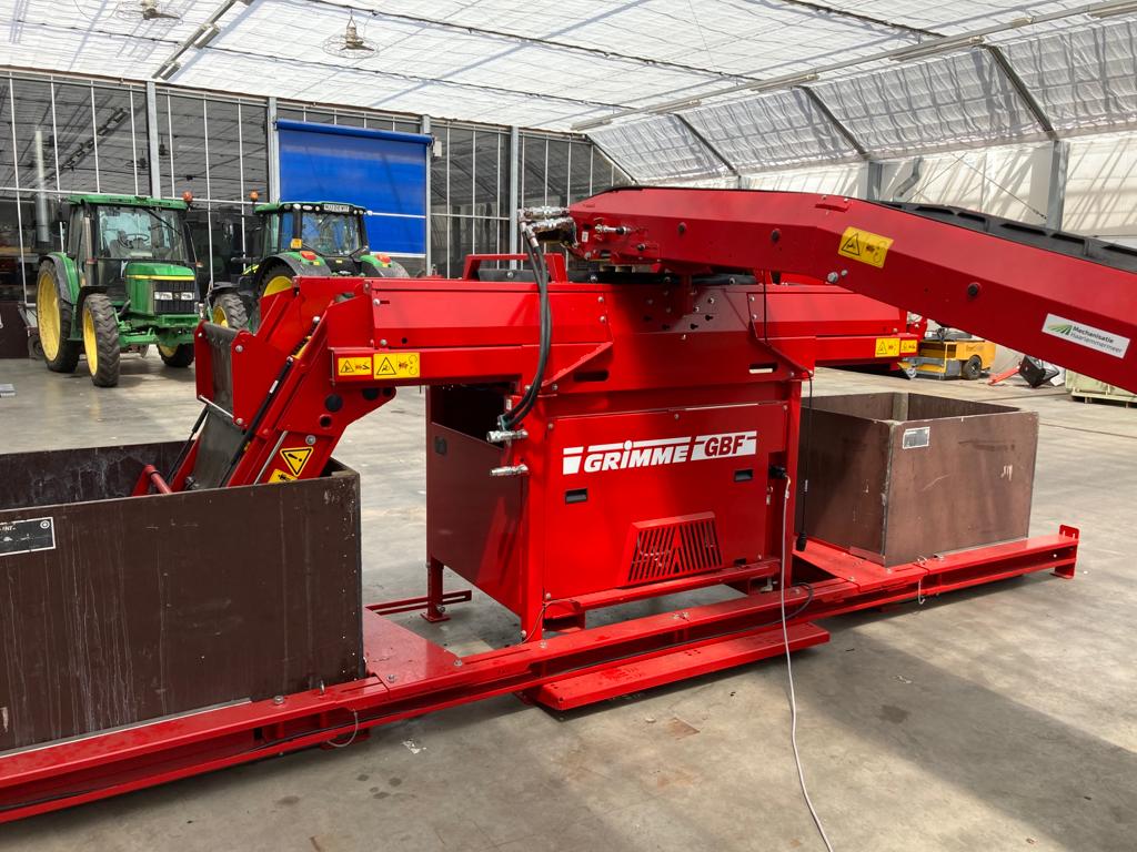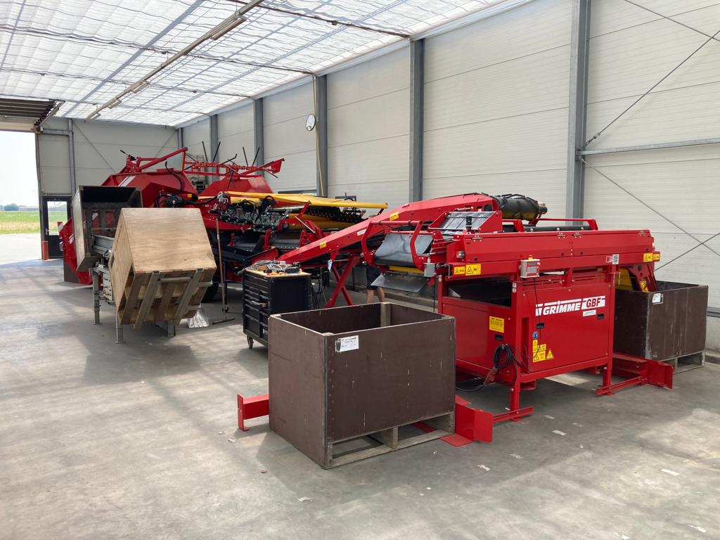 Peter van Firma N.J.J. de Wit en Zoon heeft recent een Grimme ontvangstbunker en Grimme kistenvuller in gebruik genomen. De RH 24-45CF bunker is naast de fabrieksopties; o.a. voorsortering, doseerhaspel, Flow-Control, kettingsmering, geveerd aannamekleed, brede afvoerbanden, voorzien van een M.H. Presenteerband. Met deze band is het mogelijk om keurig gedoseerd, beschadigingsvrij en met grote capaciteit de bollen te reinigen en voor te sorteren. Daarnaast is er ook gekozen voor een Grimme GBF automatische kistenvuller. Deze kistenvuller is met een toevoerband verbonden aan de ontvangstbunker. Alles samen een keurige inschuurset! Wij bedanken de firmanten en wensen hen veel werkplezier met deze mooie combinatie.