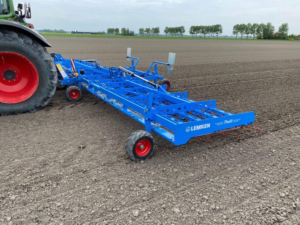 Lemken Thulit MF/900 wiedeg beschikbaar voor demonstratie. Uitvoering: 9 meter werkbreedte, 6 grote dieptewielen, ligt en sterk vakwerkframe met 8 rijen veertanden voor maximale overlap zonder verstoppingen, tanden 8 mm. dik met hydraulische drukverstelling ( 100 t/m 5000 gram) speciale transportstand binnen de 3 meter en transportverlichting met veiligheidsborden. Eenvoudig aanpasbaar aan bijna alle cultuurgewassen. Informeer nu naar een demo op uw bedrijf en ervaar de voordelen van de Lemken Thulit!