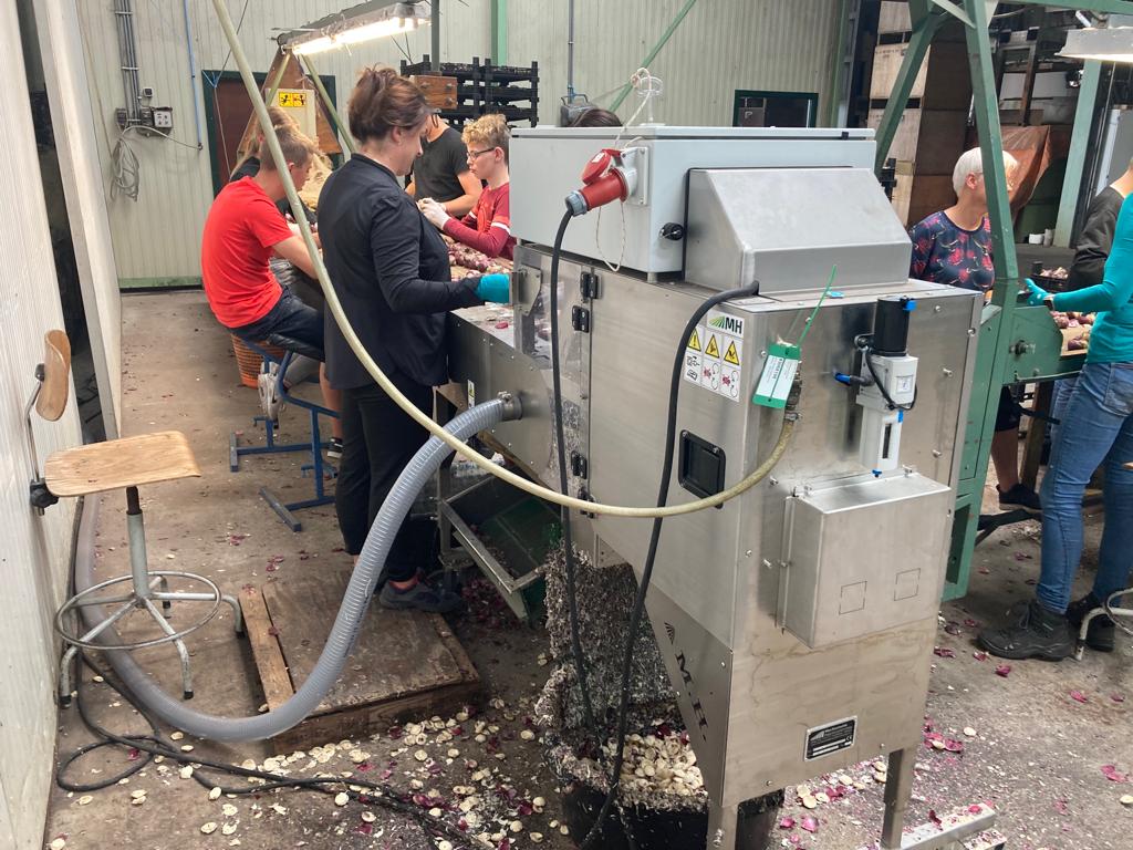 M.H. Wo -Be 2 hollow machine delivered to G.J. de Wit and Sons in Lisse. Arie de Wit has chosen to machine hollow the Hyacinths. More capacity with fewer hands of course while maintaining an optimal result. In addition to the standard version, a blow-off set on the hollow knives has also been chosen, extra sets of blades and a separate screw compressor. The latter to quietly and economically meet the required air volume for the hollowing machine. We thank Arie for the trust and wish him a prosperous growth- and breeding season closed.