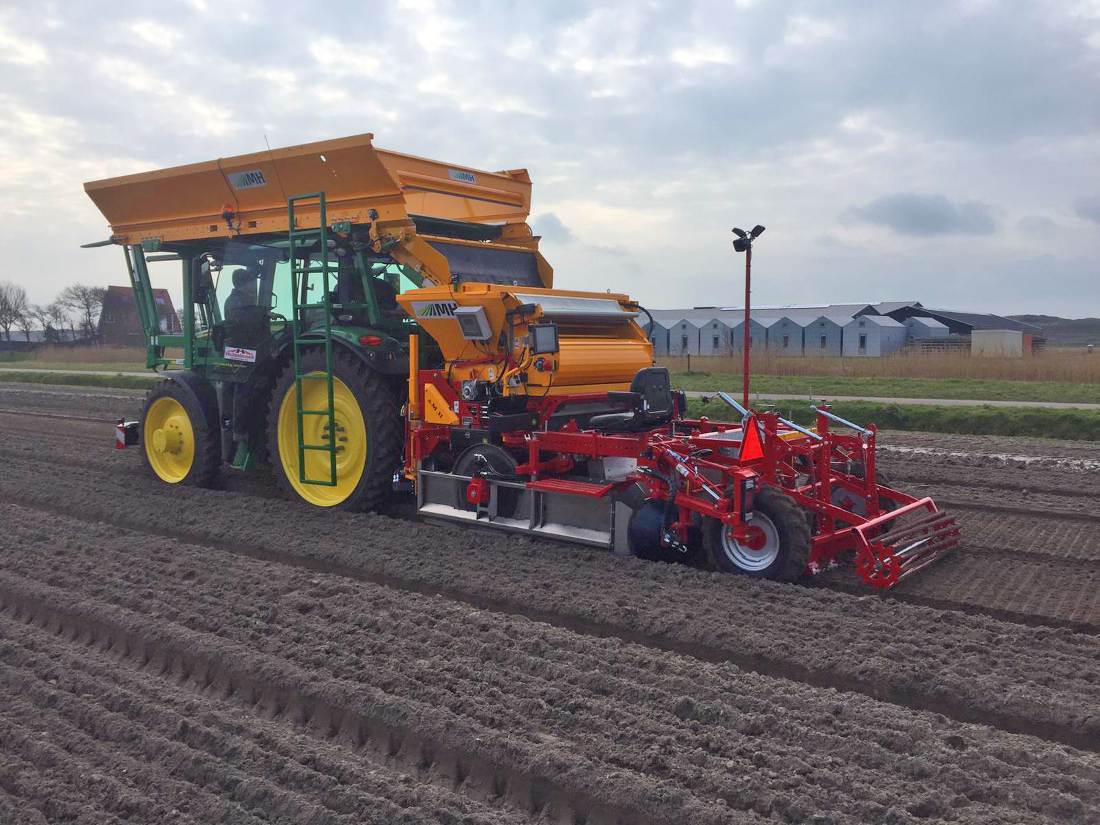 Most lilies are now in it. At Hulsebosch Flower Bulbs B.V. in Den Helder this year for the first time with an M.H. MP 1800 planting machine. The multiplanter is equipped with the latest planting vessel and with almost every conceivable option. Automatic spirit level- and plant depth determination, lelieverdeelset, Cremer Tel-O-Scope counting unit with Multi-Tronic Synchrodrive control, vibrating ankle strap etc., etc..