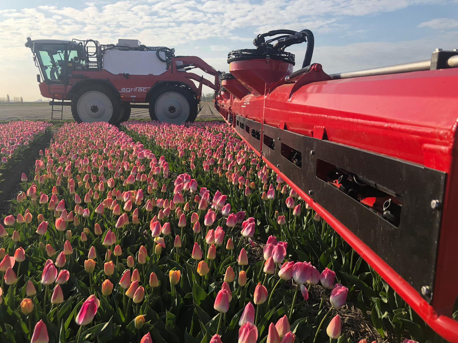 Last week we delivered a new Agrifac Condor to Dümmen Orange Calla, and what a beautiful pictures that resulted! From 285 hp strong FPT engine ensures smooth operation of the powerful drivetrain and the fans on 33 meter wide AirFlowPlus boom. This tree with air support and caps every 25 cm meets the latest requirements. FastFoldPlus and ProActivePlus balance are also part of this sturdy spray boom.